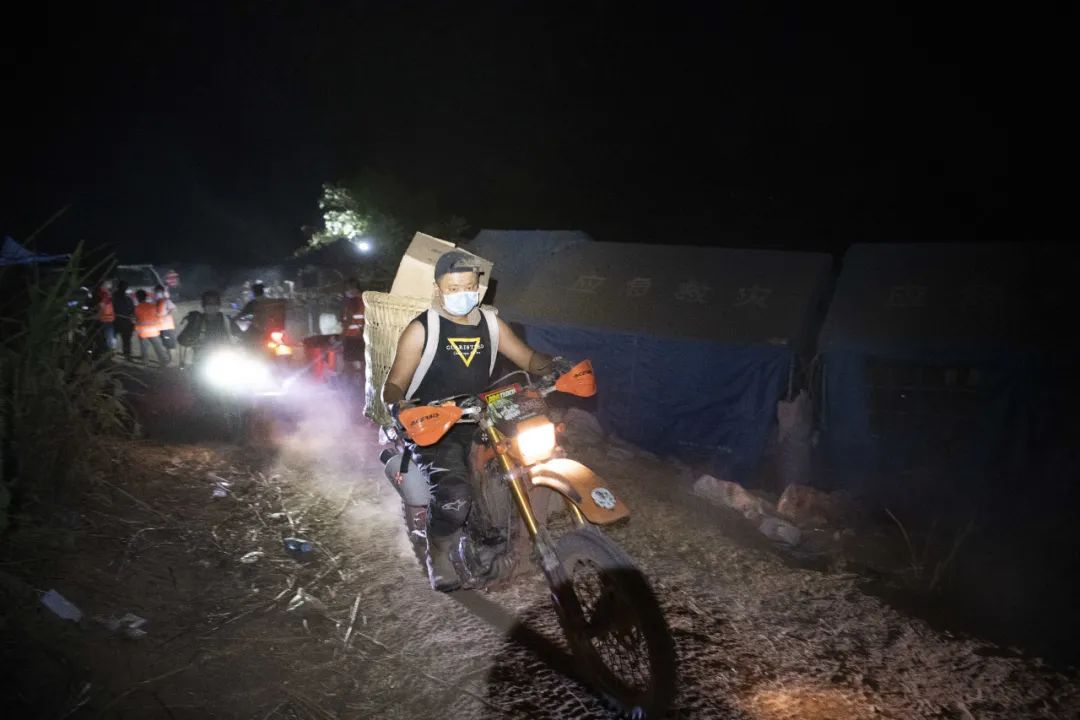 8月25日,北碚区歇马街道,四号防火隔离带,志愿者深夜骑着越野摩托运输物资。记者 谢智强 龙帆 摄/视觉重庆