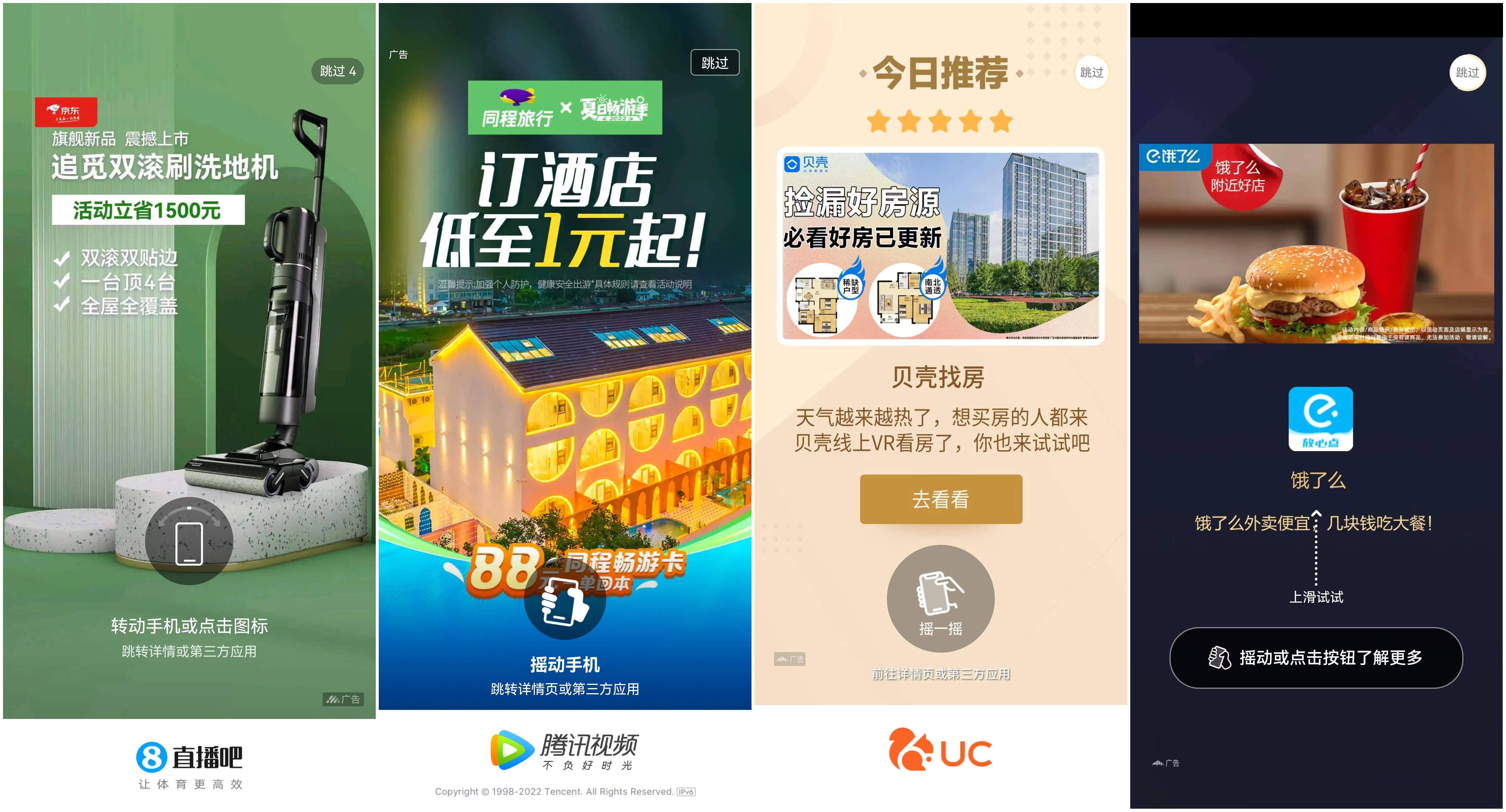 新江苏测试发现,目前“摇一摇”广告最多的是电商平台,此外还有手机游戏、餐饮外卖平台及中介服务平台等。