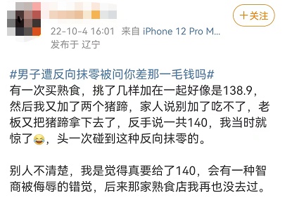 男子表示从来没听说过抹零还能往上抹