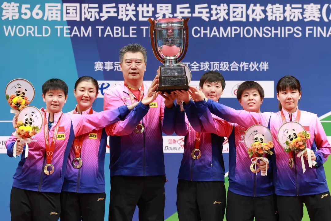 此前,陈梦、王曼昱和孙颖莎在女团决赛中联袂战胜日本队,为中国队摘得五连冠。中国乒乓球男队和女队都是第22次捧起世乒赛团体赛冠军奖杯斯韦思林杯和考比伦杯。