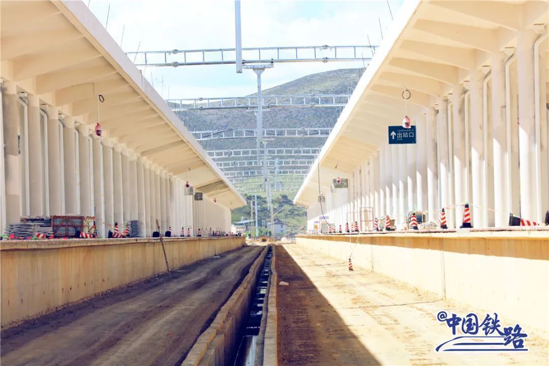 目前,全线桥梁、路基、站房工程基本完成,20座隧道已贯通19座,哈巴雪山隧道待贯通。