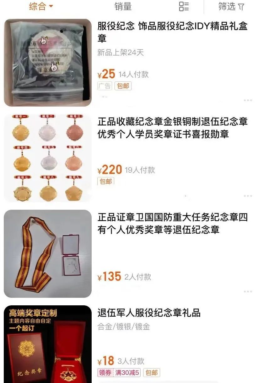 显而易见,他们无非是把对军人功绩的褒奖,对军人牺牲奉献的肯定的纪念章,当成闷声敛财的工具,公然打出“几十元包邮”“个性化定制”等营销噱头,通过私自仿制来大肆销售,把干净纯粹的褒奖激励变成了一门制假贩假的生意。