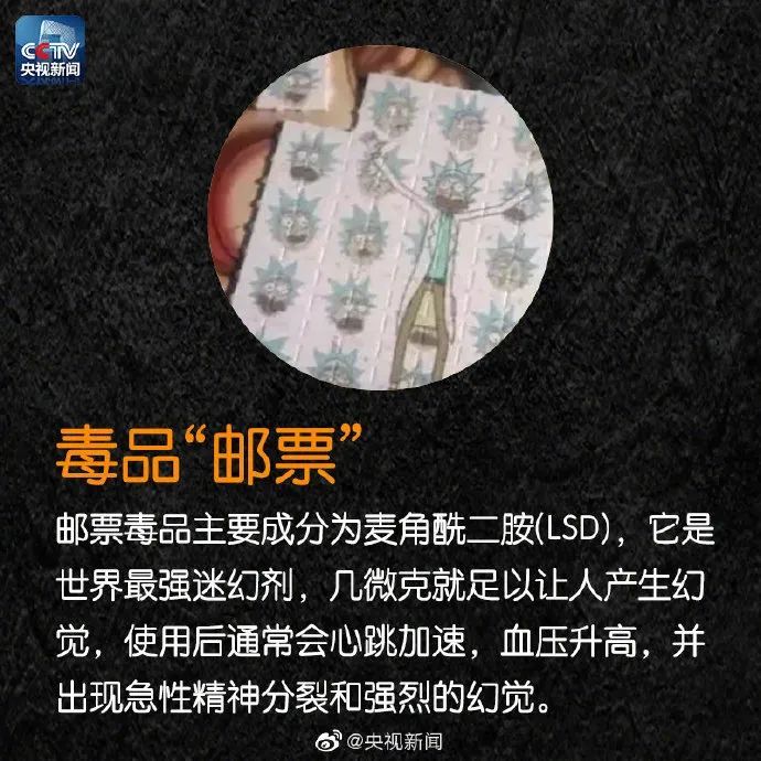 LSD(Lysergic Acid Diethylamide,麦角酸二乙基酰胺)是一种无色、无嗅、无味的液体,属于半合成的生物碱类物质,是一种强烈的精神类药物。犯罪分子将“LSD溶剂”吸附在纸上,就像小孩的卡通贴纸,放在舌上通过口腔黏膜吸收,就会使毒品渗入,让人在视觉、听觉和记忆上产生强烈幻觉,并出现急性精神分裂。这也就是我们近来常听说的新型毒品“邮票”。