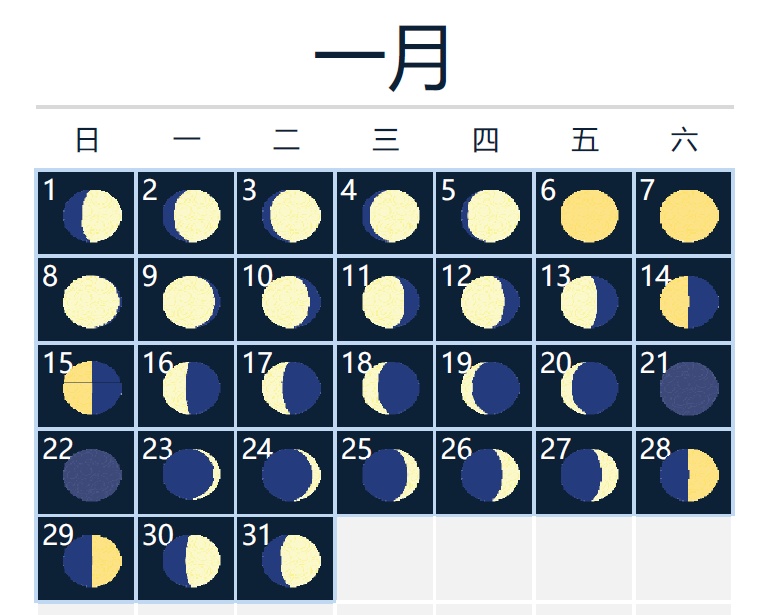 例如,2023年的除夕和春节是1月21日和22日,都是没有月亮的日子。