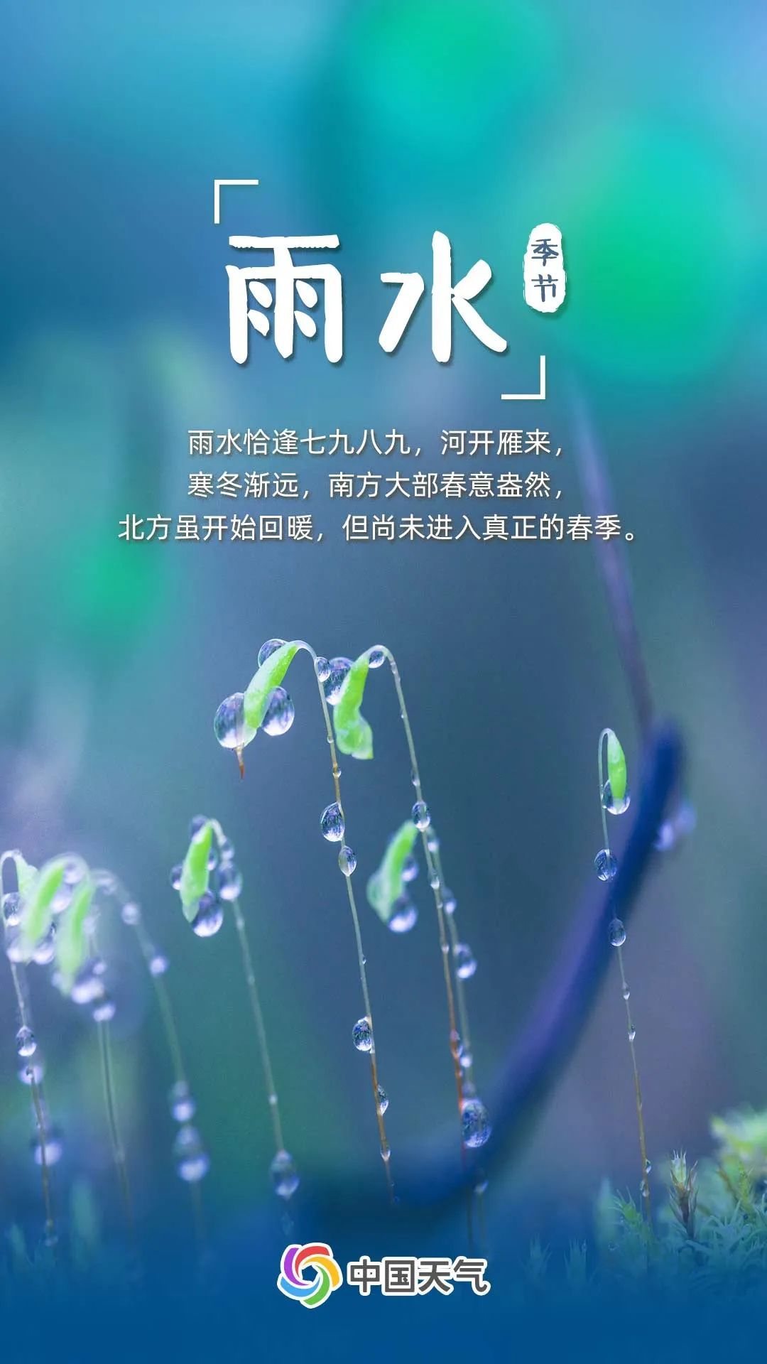 雨水恰逢七九八九,河开雁来,寒冬渐远,和煦的阳光和潇潇的细雨开始浸染早春大地。我国南方大部春意盎然,北方虽开始回暖,但尚未进入真正的春季。