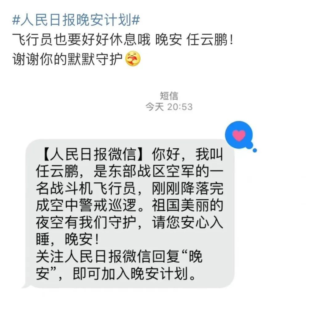 飞行员任云鹏,全网都在对你说晚安!