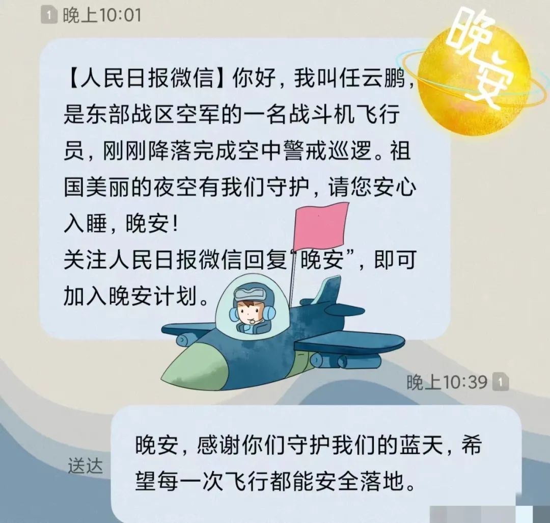 战斗机飞行员任云鹏说晚安: