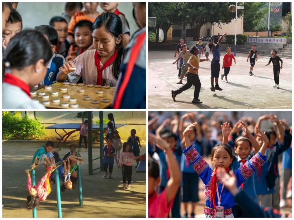 每到下课铃响,湾塘小学的操场都会瞬间沸腾,打篮球乒乓球的、“编花篮”的……