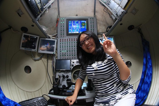 唐立梅回忆,第一次从水下看海面,阳光透下来,在一片湛蓝中泛着白光,随着“蛟龙”号继续下潜,阳光消失了,世界一片漆黑。