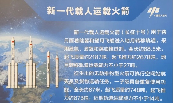 ▲ “逐梦寰宇问苍穹——中国载人航天工程三十年成就展”上关于长征十号运载火箭的介绍