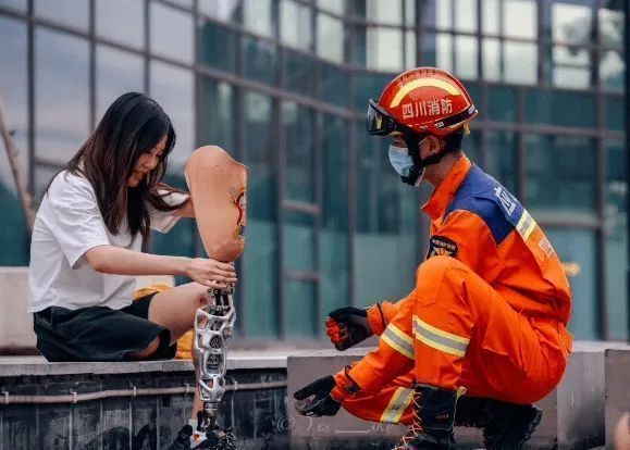 其实我一开始并不知道他的名字,甚至都没有太留意他。我之所以会关注到他,是因为大家都在问我是怎么卡住的、应该怎么办时,他却认真地观察了一会假肢,然后转过身问我:“你穿这个会不会痛?”