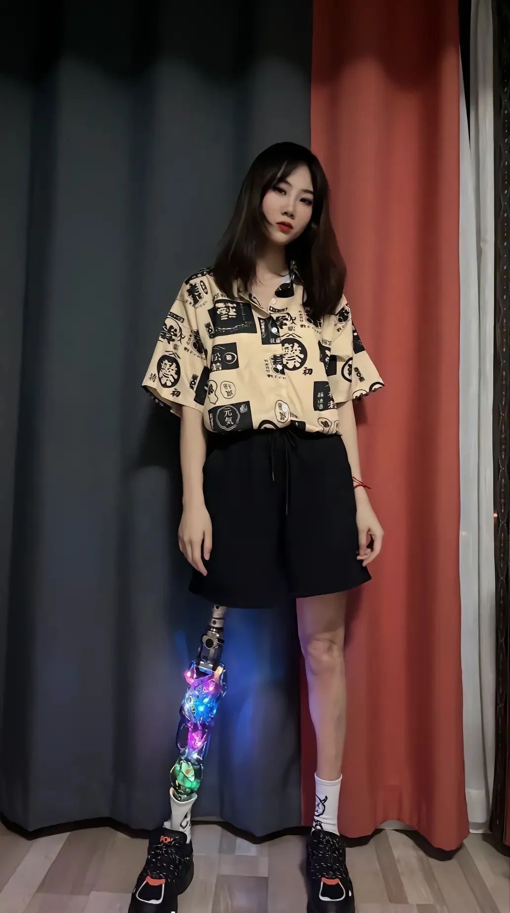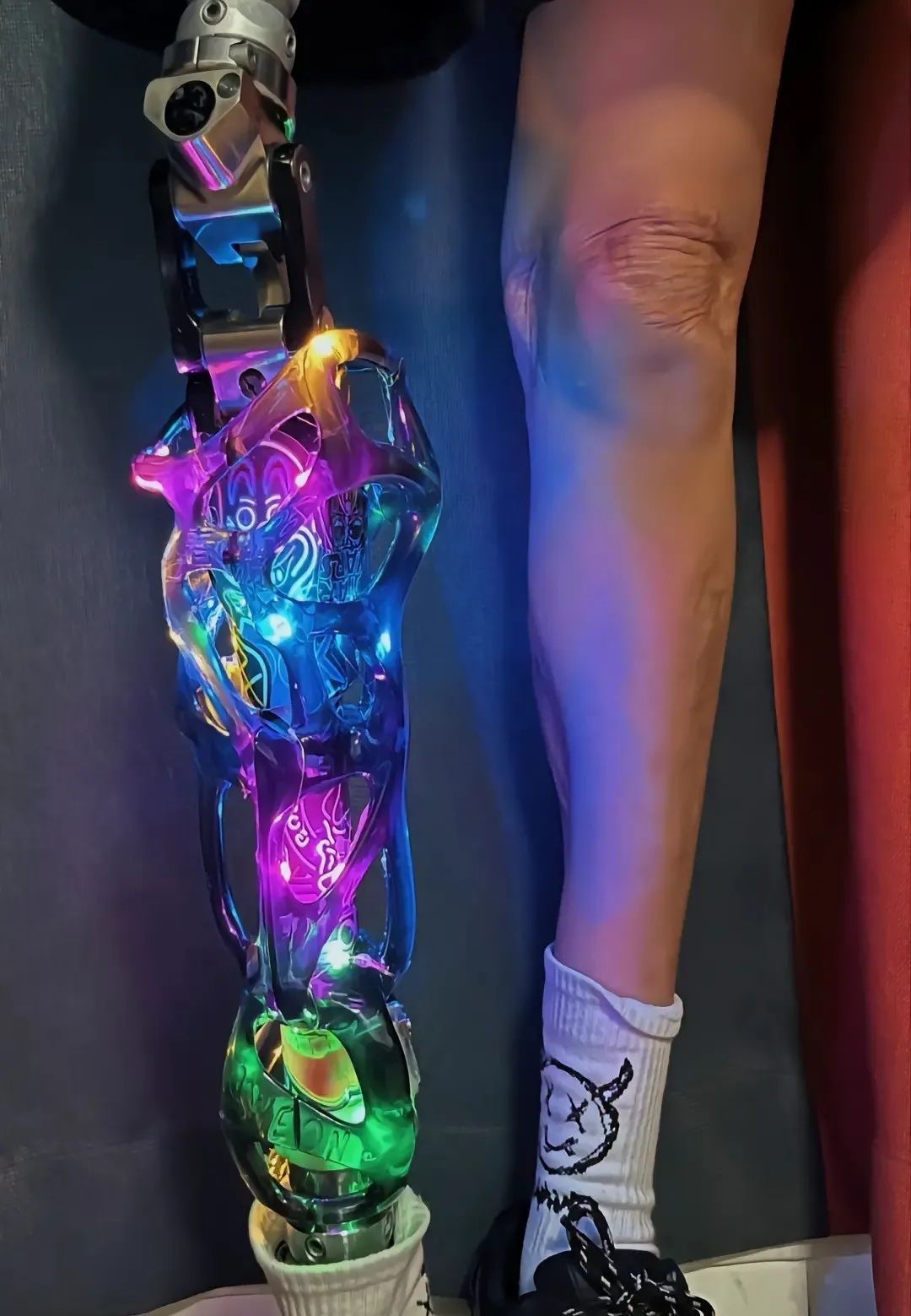 于是,我在假肢上装了闪光彩灯。夜里看起来,它就是一条发光的小钢腿,非常“赛博朋克”。