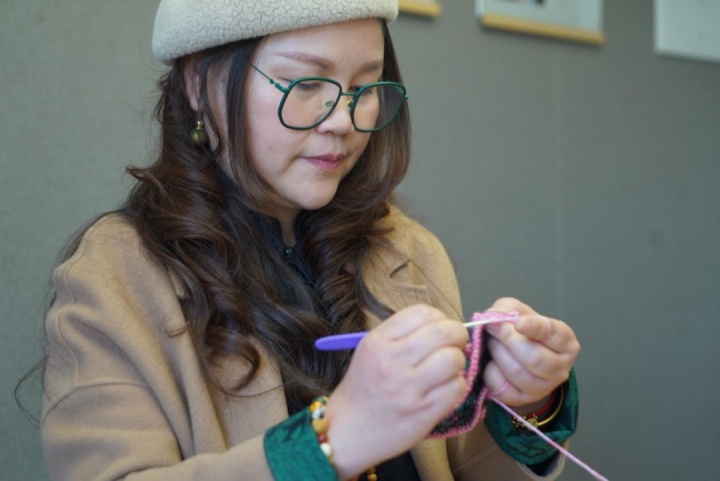 一根针、一条线,胡春芳说,编织带给她精神上的享受,而钩针编织这门艺术,更需要她学会对自然美、生活美的理解。