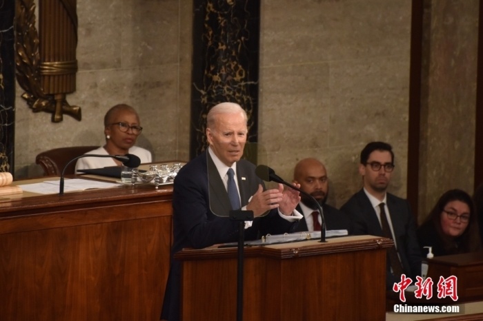 当地时间2月7日晚,美国总统拜登在国会发表其任内第二次国情咨文演讲。图/中新社记者 沙晗汀