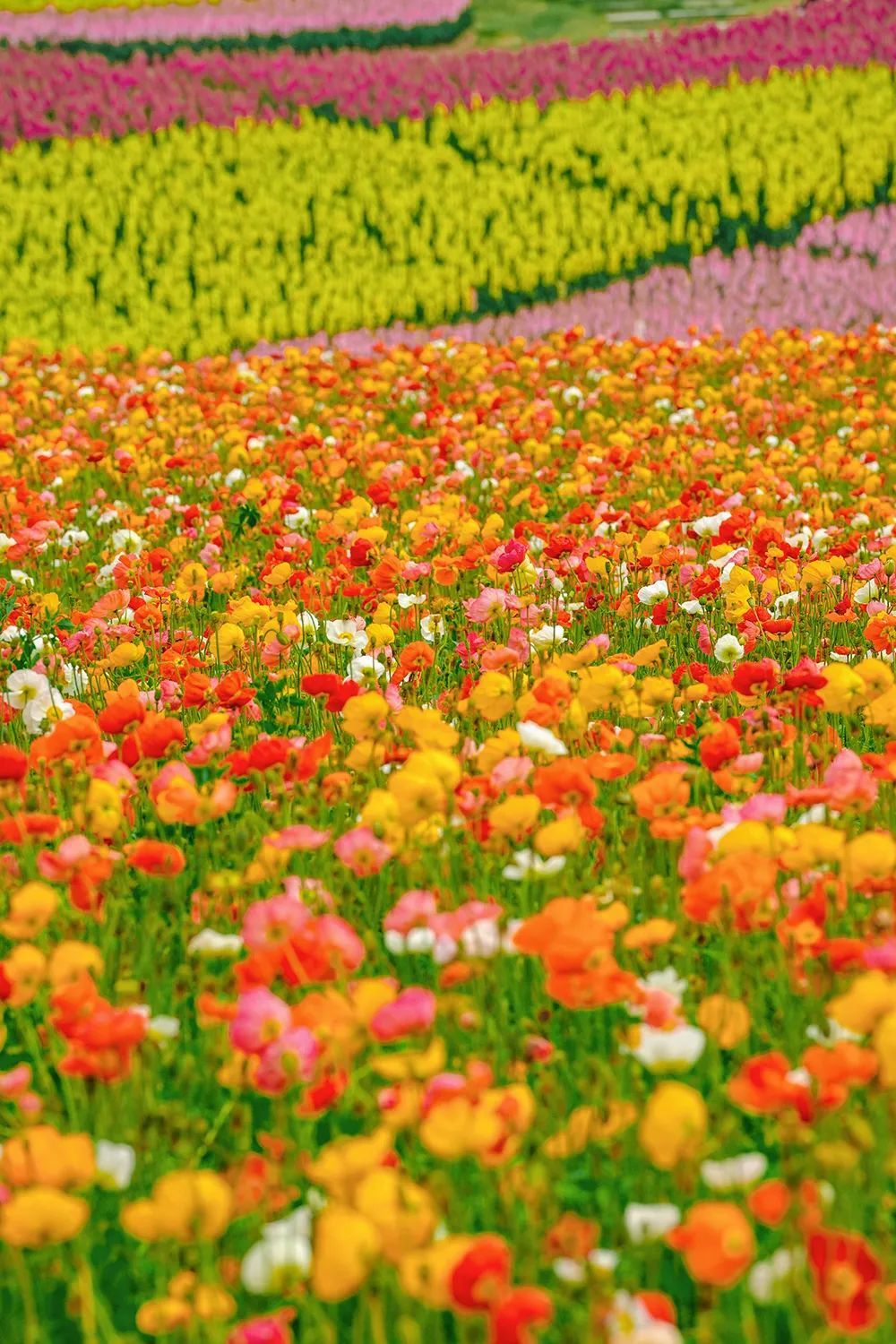 金鱼草像是一张五彩地毯覆盖在主花山上,它的花语是忘记一切烦恼,希望你能从人潮拥挤中短暂逃离,与多姿多彩的生活撞个满怀。