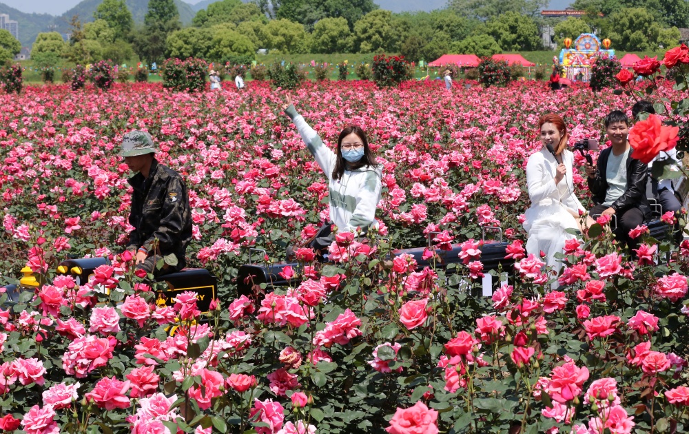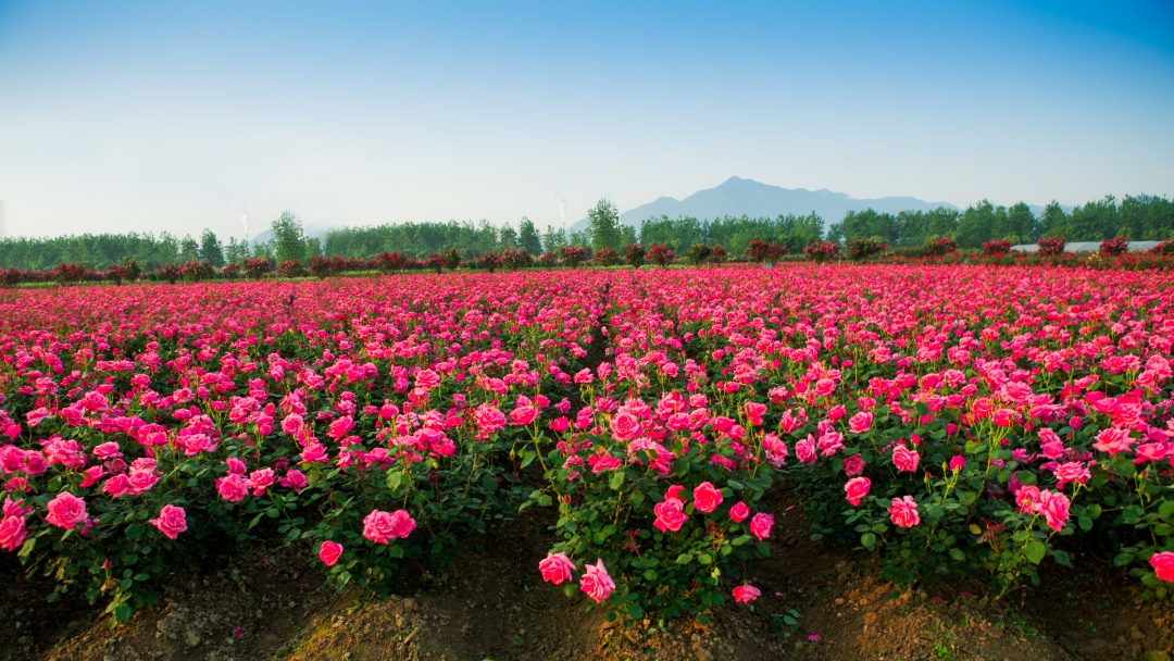 百亩玫瑰花海浪漫绽放