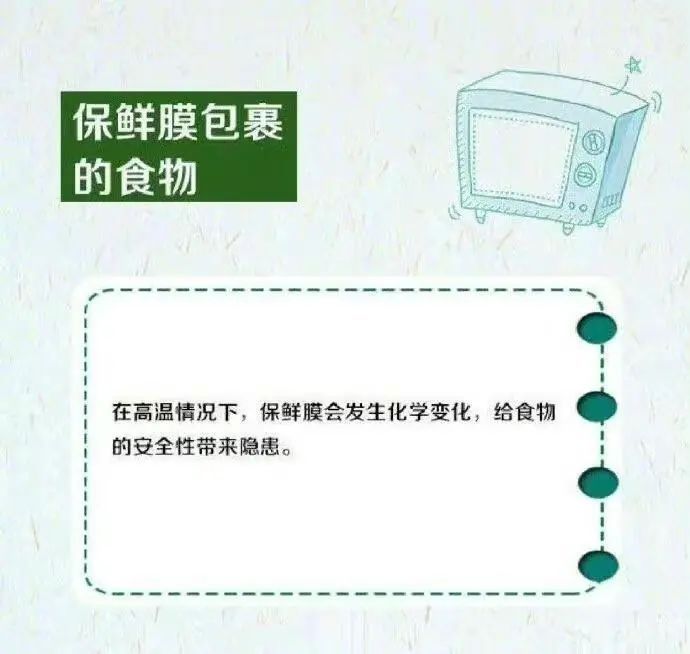 忌加热时间过长。微波炉采用的是高频加热,加热速度很快,时间太长会使食物变干变硬,甚至产生毒素。