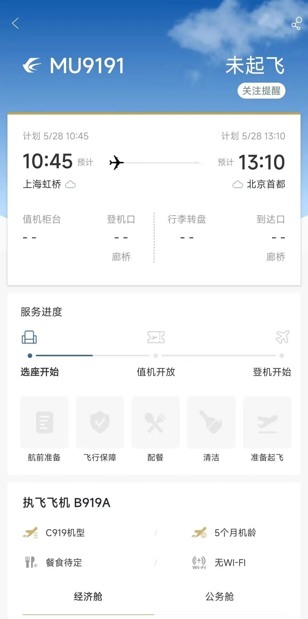 航班班次:MU9191上海虹桥—北京首都