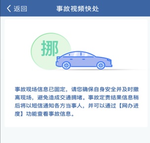 民警根据视频通话采集的证据信息,确定各方过错行为和事故责任以完成认定。系统会通过手机短信告知当事人事故认定结果,当事人可以通过“交管12123”APP的【网办进度】查看电子版事故认定书。如对事故责任认定有异议的,可在事故认定文书送达之日起三日内书面申请复核。同时,可以在线向保险公司直接发起事故定损理赔。