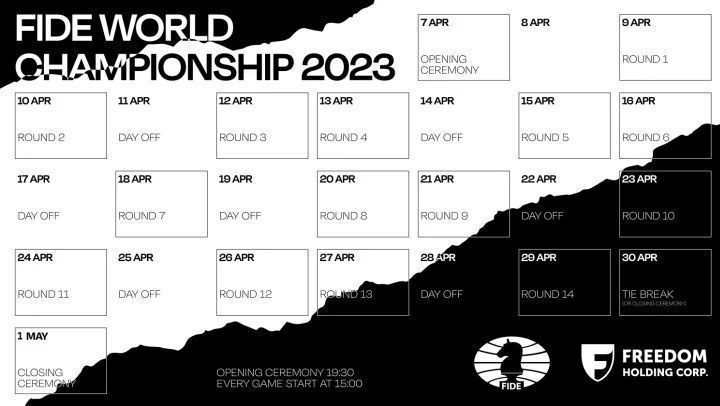 按照赛程,4月14日是比赛的第二个休息日。北京时间4月15日17时,双方将进行第五盘棋的较量,涅波姆尼亚奇将执白先行。