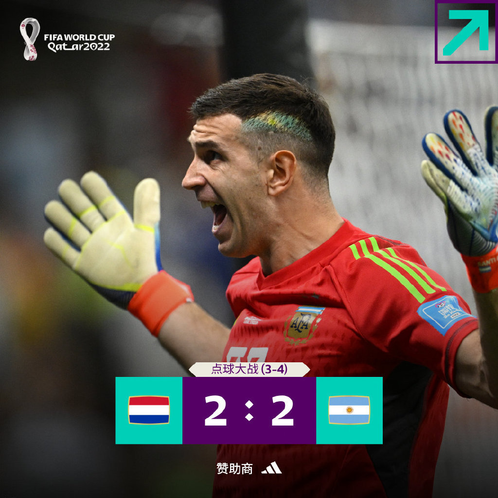 点球大战中,范戴克与博古伊斯射门被达米安·马丁内斯神勇扑出。恩佐·费尔南德斯射门偏出。荷兰点球大战3-4不敌阿根廷。潘帕斯雄鹰挺进四强。