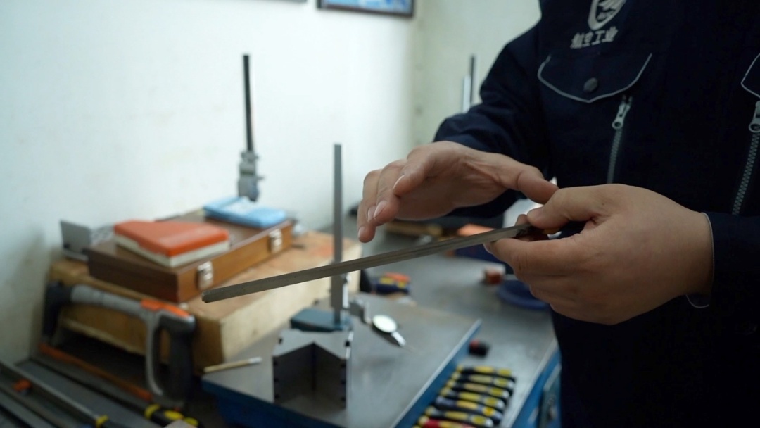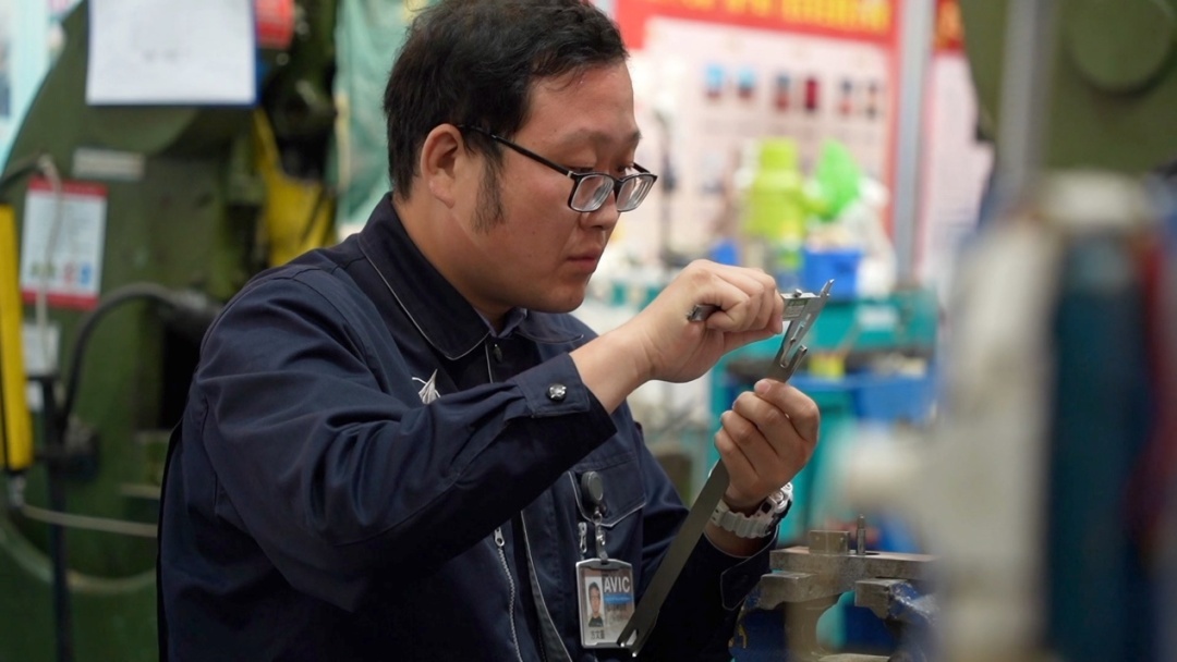 飞机装配过程中会受到很多条件制约,比如材料、机床甚至当天的温度和湿度。作为钳工,方文墨可以“把这些所有的外界因素都排除掉”,用手工的方法把零部件恢复到图纸所要求的精度。