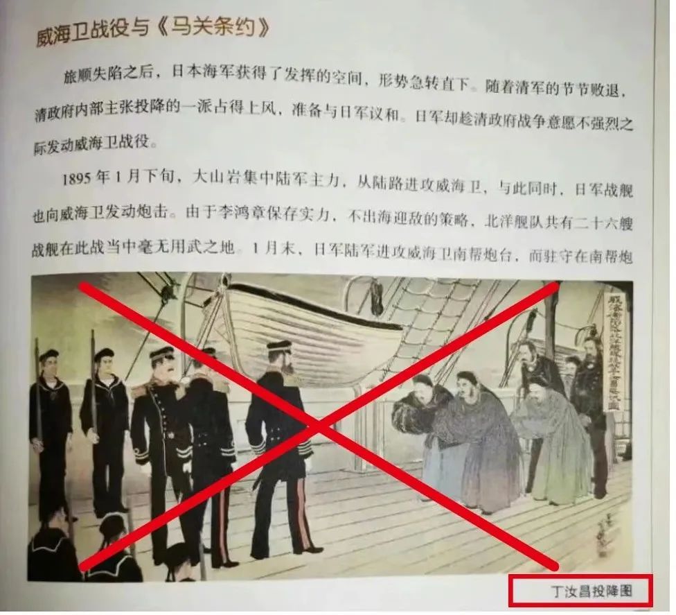 此前,有网友发帖表示,给孩子买的历史读物《写给孩子看的中国史》出现事实性错误:在讲述甲午中日海战的那段历史时,书中用了一张“丁汝昌投降图”。消息一出,舆论哗然。