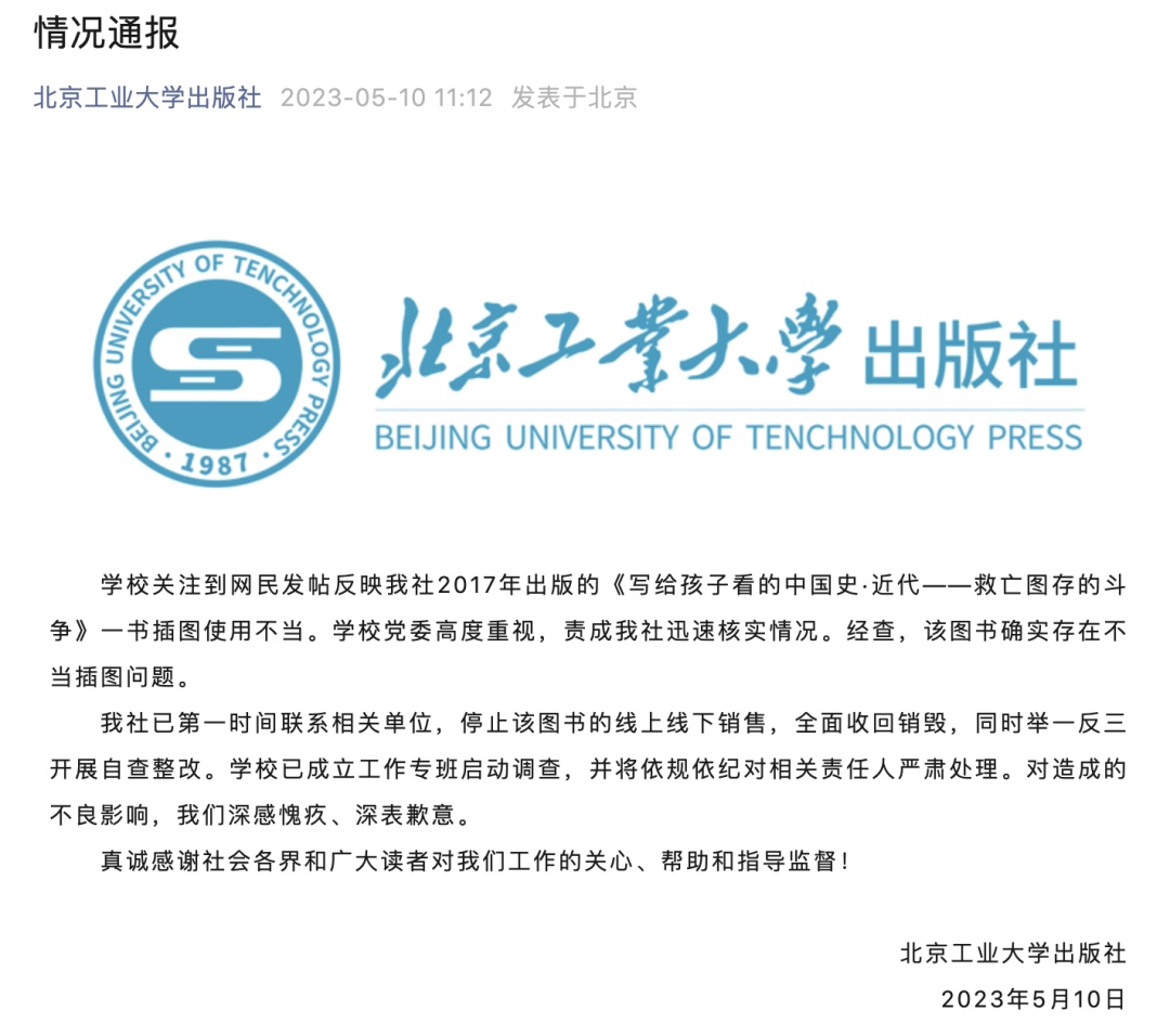 如今,涉事出版社迅速作出回应,除了承认存在不当插图问题,还表示,停止该图书的线上线下销售,全面收回销毁。此外,无论将依规依纪对相关责任人严肃处理,还是“深感愧疚、深表歉意”,都展现了应有的作为。