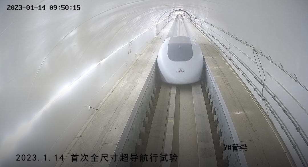 1月14日,中国航天科工三院在山西省大同市阳高县高速飞车试验基地,完成了超高速低真空管道磁浮交通系统(简称高速飞车)全尺寸试验线(一期)首次超导航行试验,取得成功。