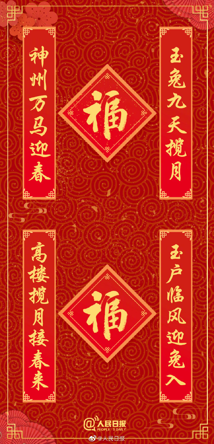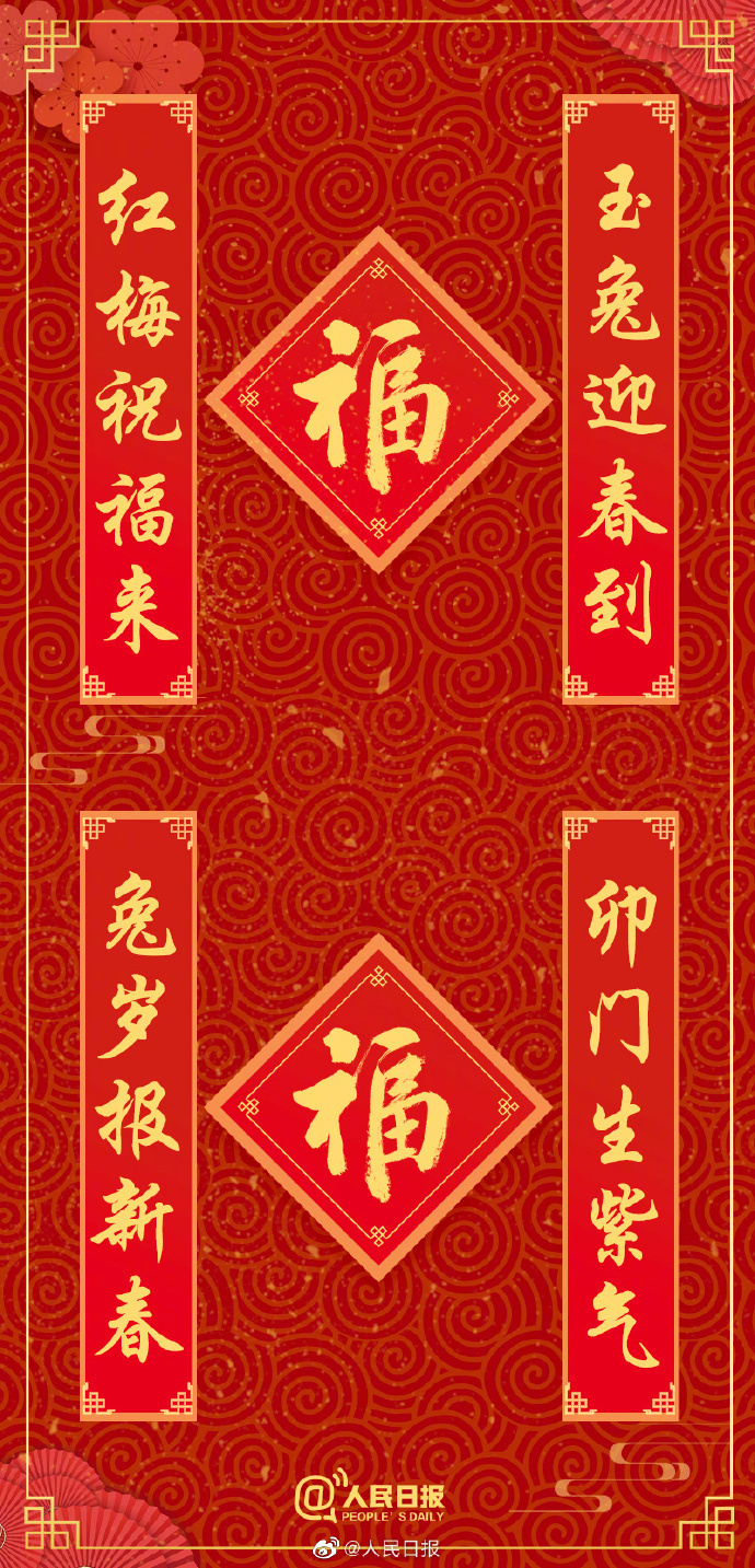 “腊月二十八,打糕蒸馍贴花花”,后天就是除夕,你家的春联贴好了吗?“卯门生紫气,兔岁报新春”“虎啸深林增瑞气,兔驰沃野益新风”“好风携兔随春至,瑞雪催梅兆福来”…你准备了哪些兔年祝福语?18幅兔年春联↓↓一笔一画祝你大展宏“兔”,新年大吉!