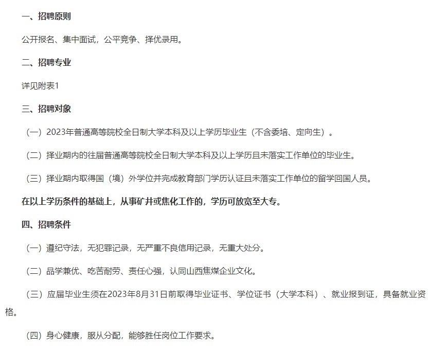 山西焦煤网于2022年11月21日发布的《山西焦煤集团所属子公司高校毕业生招聘公告》显示,因业务发展和生产需要,山西焦煤集团所属西山煤电、汾西矿业、霍州煤电、山煤国际、华晋焦煤、山西焦化六户子公司进行了高校毕业生招聘。