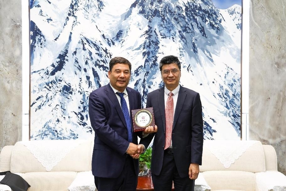 新疆大学党委副书记、校长姚强为库尔班·尼亚孜颁发“杰出校友”荣誉证书。