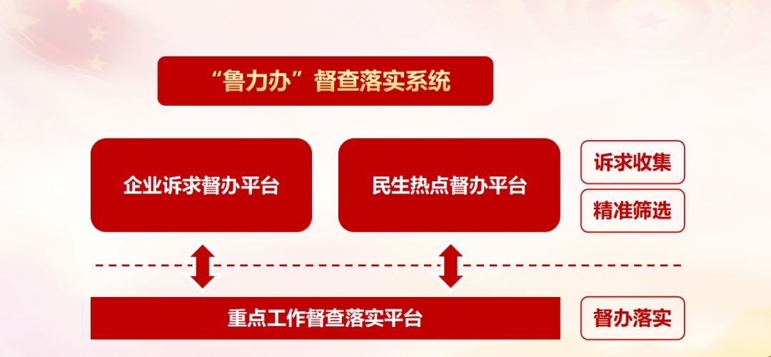 为破解难题,提升工作质效,省督查办坚持数字赋能、机制创新,打造了“鲁力办”督查落实系统,前端通过企业诉求督办平台、民生热点督办平台广泛收集企业和群众诉求,运用大数据手段智能筛选需要重点关注和督办事项,后端通过重点工作督查落实平台加大督办力度,让问题从“诉”到“办”,桩桩有回应,件件有着落。