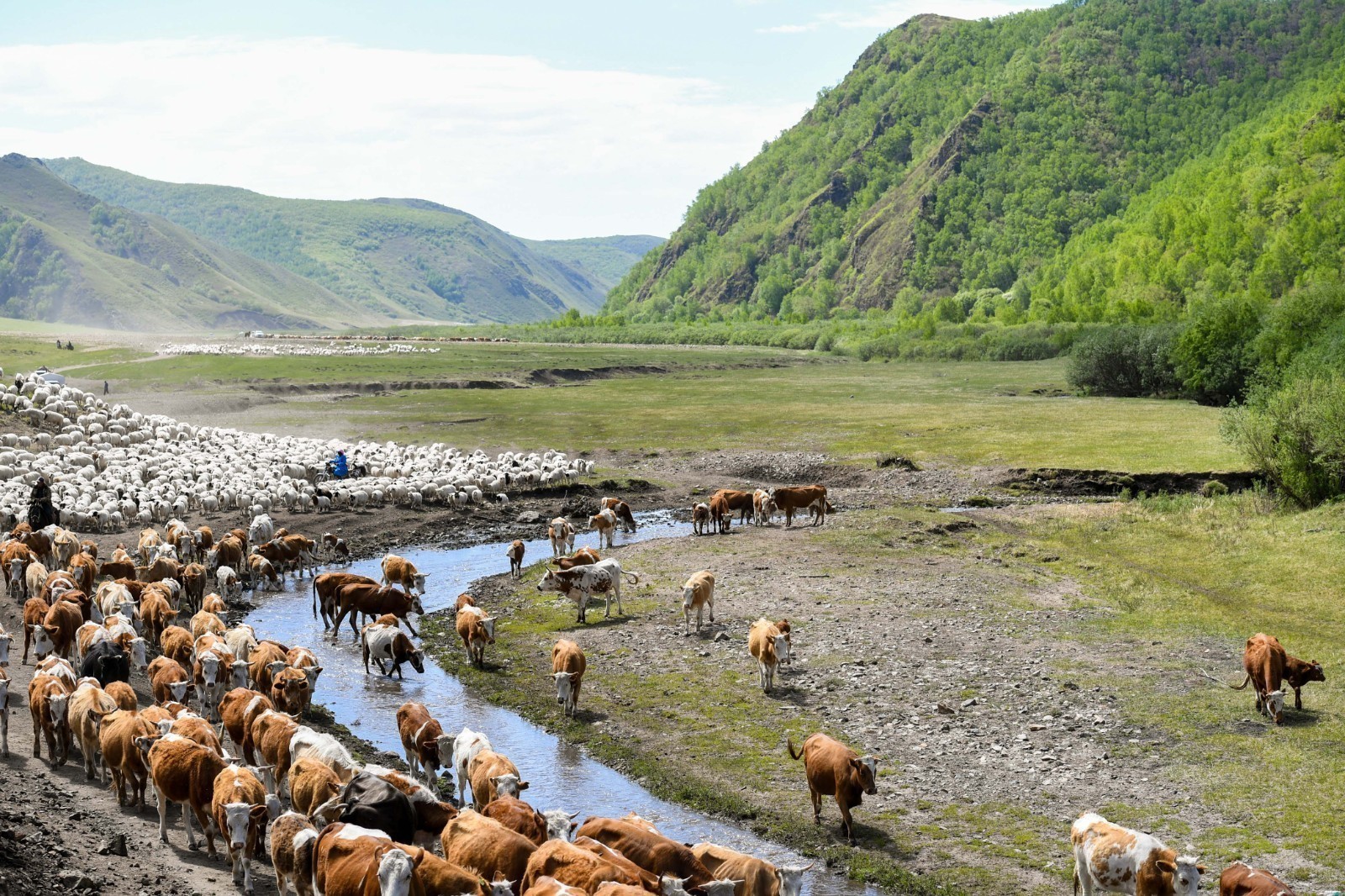 这里群山巍峨、草原广袤、河流密布,依然原汁原味地保留着区分冬春营地和夏秋营地、逐水草而居,食肉饮酪、骑马射箭的蒙古族传统游牧生产生活方式。