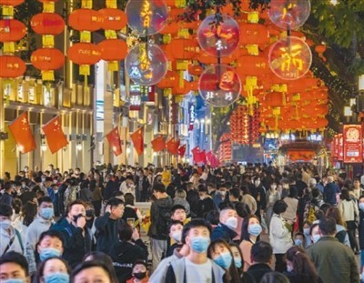 广州市北京路步行街上春节气息浓郁,大批市民和游客前往游览。 魏劲松摄(人民图片)