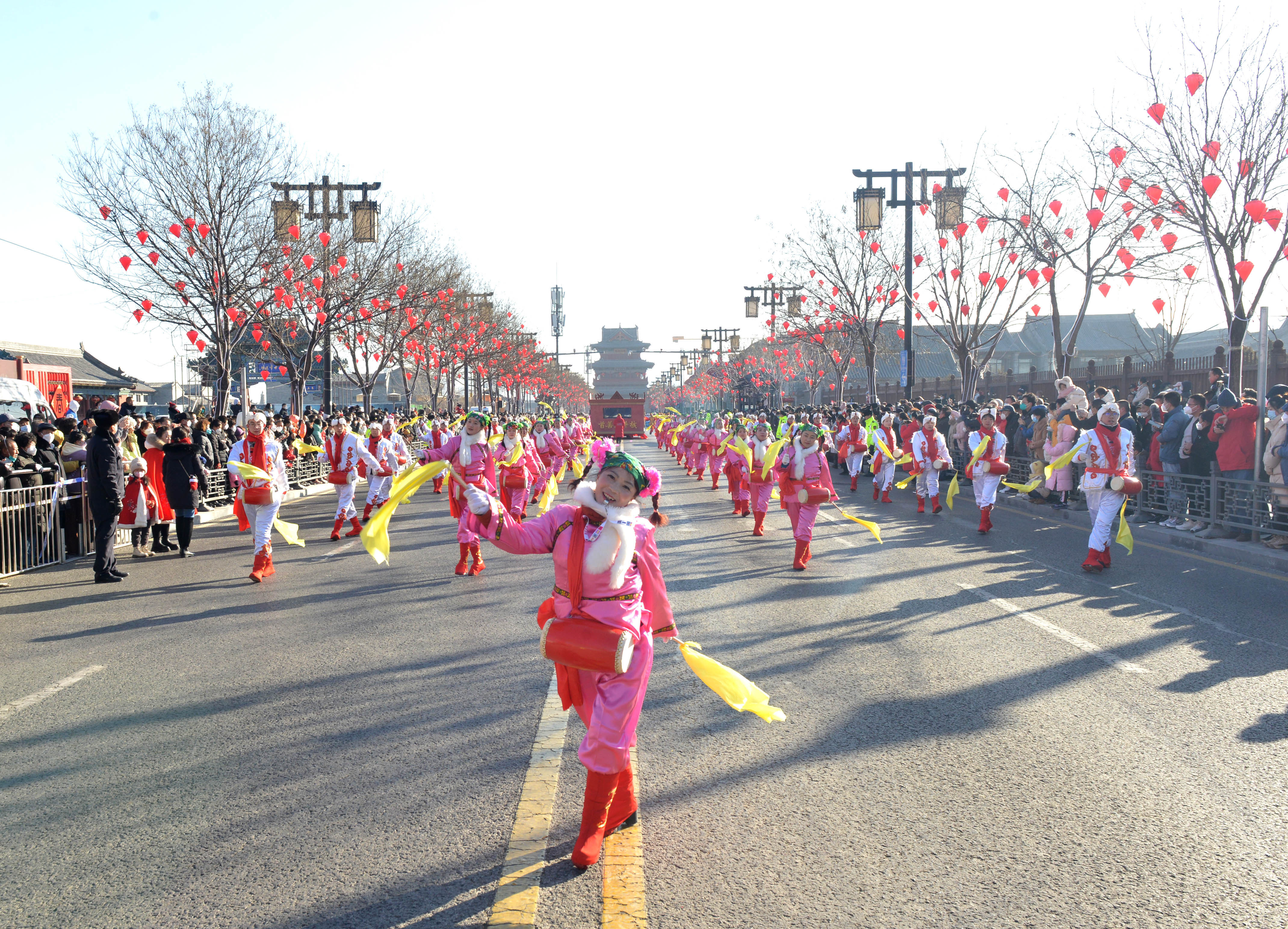 在“张灯结彩靓新春”中,5项活动分别是城市街区街景亮化、2024大同古都灯会、欢乐方特新春烟花秀、北村影视基地冰灯会、古城门悬挂春联,让游客通过赏灯、看烟花秀、观冰灯展等极致的视觉享受,感受古都春节的璀璨烟火,体验浓浓年味。“欢歌乐舞迎新春”包含第十二届春节文化庙会、民俗社火表演、大同民俗大展演等5项主题活动,这些参与性强、娱乐性高的传统文化活动,让市民游客在欢欢喜喜的氛围中感受塞北的民俗风情。