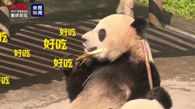 在重庆动物园熊猫馆,记者看到双胞胎大熊猫“双双”“重重”和“喜喜”“庆庆”围坐在木桌旁,它们一边翘着肥嘟嘟的“二郎腿”,一边细细品尝着竹笋和胡萝卜的美味,既似一铺“麻将搭子”,又似四个馋嘴的好兄妹,吸引了不少游客的目光。
