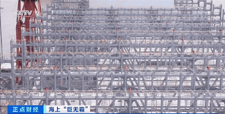 中国船舶集团沪东中华长兴造船副总经理 刘学东:白颜色的就是大的烟囱。这种机舱设备,包括洗涤塔都安装在这里面,因为这个船是配备洗涤塔的,它的烟气通过海水洗涤,可以把硫的含量降低再排放。现在基本上就是通过减排节能这种方式在转换。