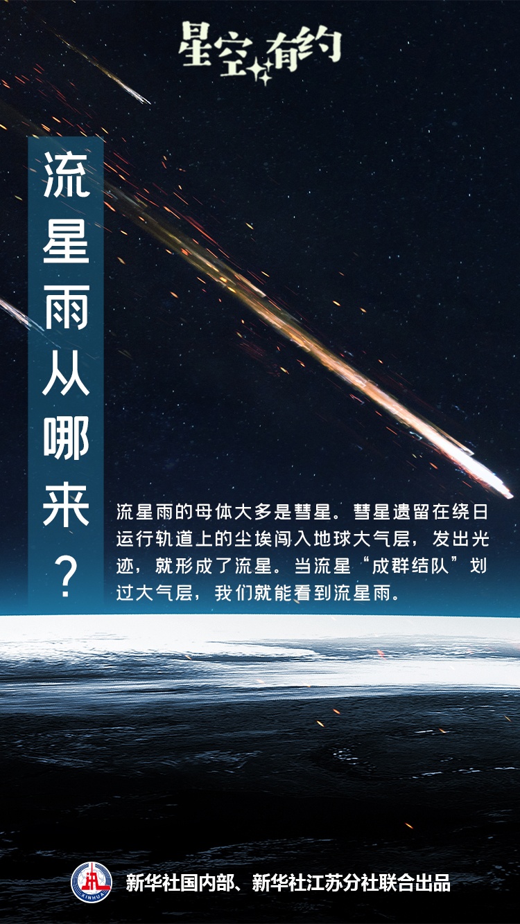 “其实,流星雨的母体大多是彗星。彗星遗留在绕日运行轨道上的尘埃闯入地球大气层,发出光迹,就形成了流星。当流星‘成群结队’划过大气层,我们就能看到流星雨。”王科超说。