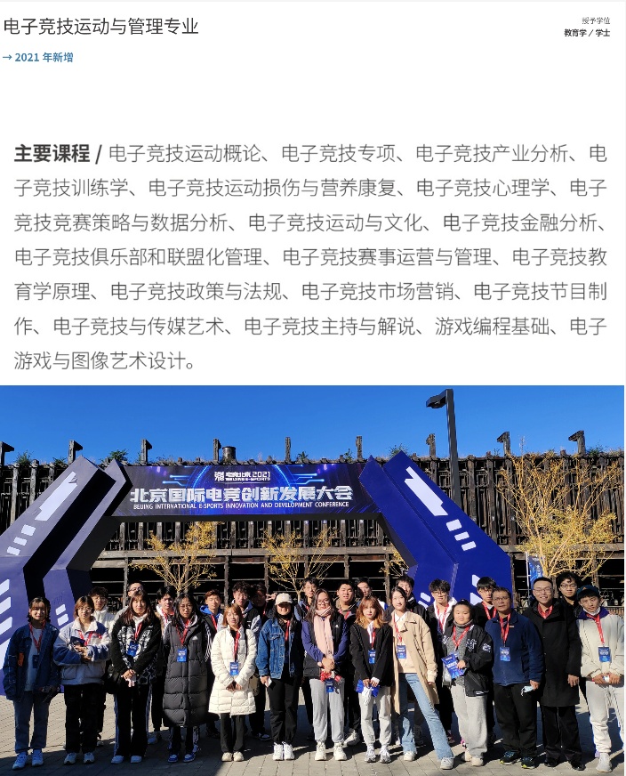有的专业则属于普通招生类。山东体育学院、首都体育学院等院校开设的电子竞技运动与管理专业为普通类招生,授予学位门类为教育学。