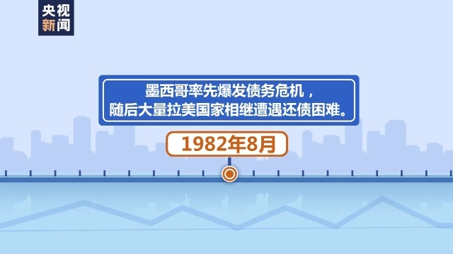 20世纪70年代,美联储实行低利率政策刺激投资与就业,让美元贬值。一些拉美国家趁机借入大量低利息的美元,投资石油开发,拉美国家外债规模不断膨胀。70年代末至80年代初,美联储突然开启加息周期,美元升值,石油价格下跌,那些借美元开采石油的拉美国家一下子掉进了美元的陷阱。1982年8月,墨西哥率先爆发债务危机,随后大量拉美国家相继遭遇还债困难,80年代也因此被称作拉美地区“失去的十年”。
