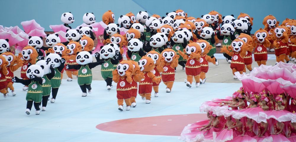 吉祥物“川川”和“迎迎”造型分别来自川金丝猴和大熊猫,寓意“四川欢迎你”。