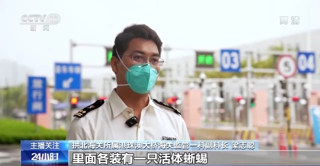 拱北海关所属港珠澳大桥海关监管一科副科长 梁志聪:当值海关关员进一步询问下,许某才将一大两小共三个塑料盒拿出来,里面各装有一只活体蜥蜴,疑似外来物种。