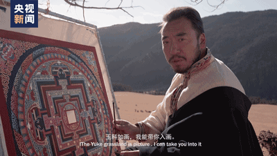 镜头一转,降泽多吉身着藏服来到了有着“玉石”之称的玉科草原,席地而坐,绘着唐卡,体验着川西独有的风情。