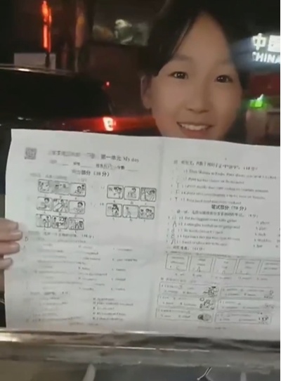 有个小朋友拿着试卷一直等着她
