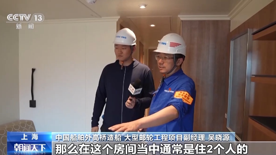 总台央视记者 吴天白:我现在就在邮轮的一甲板,也就是乘客房间所在的位置。我们可以看到,走廊两侧的客房已经基本完成了内部装修,里面的沙发、洗手间等设施都已经是可以正常使用的状态了。