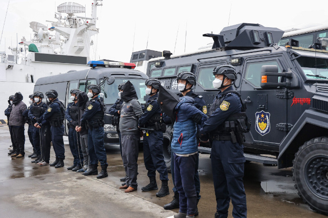 经调查发现,该贩毒团伙同时安排了其他7名船员驾驶一艘渔船进行接应,后因船只出现故障在菲律宾海域搁浅,被菲律宾警方扣留。专案组提请公安部启动禁毒国际合作,对滞留在菲律宾的7名船员开展境外抓捕工作。在公安部、外交部的大力协助下,2023年4月6日,菲律宾警方将7名犯罪嫌疑人及涉案物品移交我方。至此,该案成功告破。