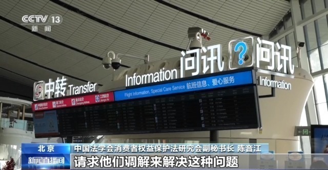 中国法学会消费者权益保护法研究会副秘书长 陈音江:如果确实遇到了问题的,消费者要及时收集好相关的证据,依法来维护自己的合法权益。比如说你可以向消协组织去投诉,你可以向民航的行政主管部门去投诉,请求他们调解来解决这种问题。如果通过这种调解还不能解决的,消费者还可以通过申请仲裁或者到法院去起诉的方式来维护自己的合法权益。