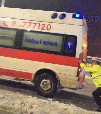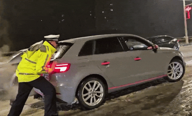 曹春拿着铁锹在路上值守。通讯员杜泽文 摄