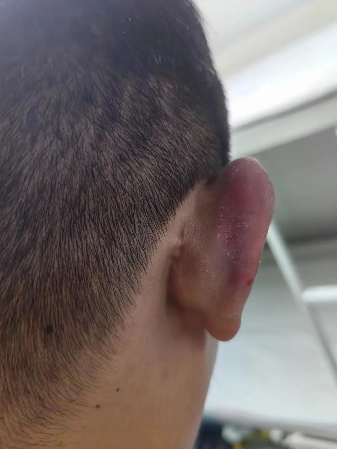 一位边防军人耳朵被冻出大泡